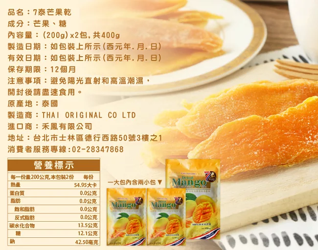 →→→→更多詳細”【七泰食品】天然芒果乾共400g(200g*2包)”介紹請點我