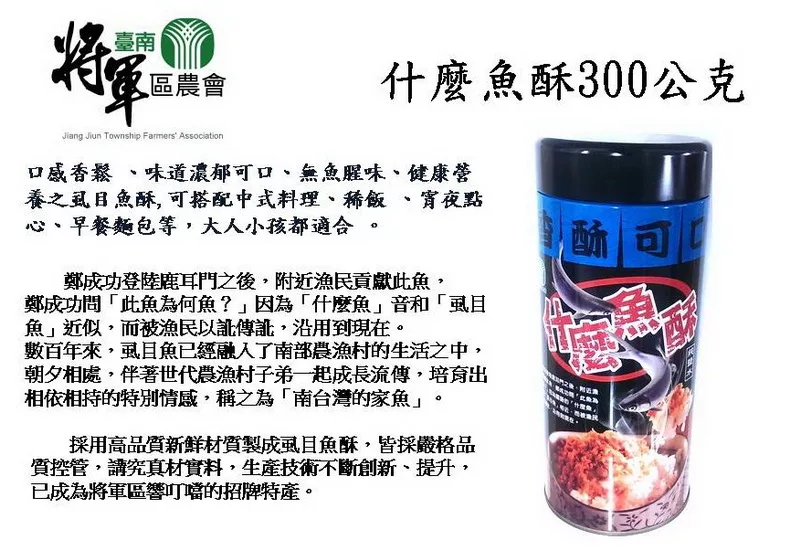 →→→→更多詳細”【將軍區農會】什麼魚酥 (虱目魚酥) 300g”介紹請點我