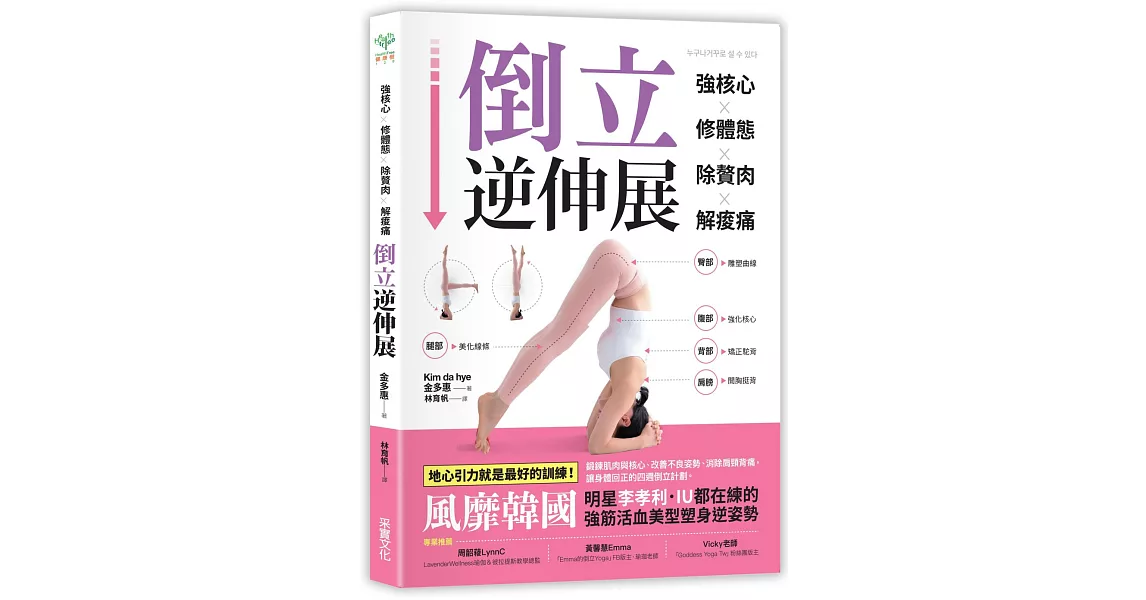 博客來-強核心.修體態.除贅肉.解痠痛,倒立逆伸展:風靡韓國,明星李孝利.IU都在練的強筋活血.美型塑身逆姿勢訂購網址: https://www.books.com.tw/exep/assp.php/87926/products/0010834620?utm_source=87926&utm_medium=ap-books&utm_content=recommend&utm_campaign=ap-202003