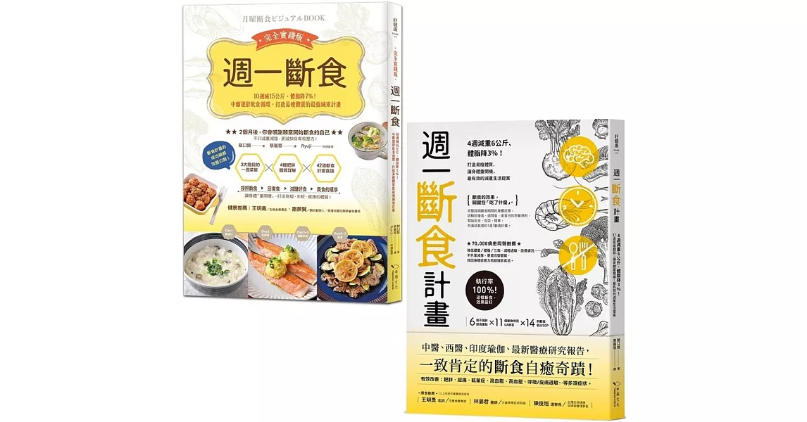 博客來-週一斷食瘦身奇蹟套書:《週一斷食計畫》+《週一斷食完全實踐版》訂購網址: https://www.books.com.tw/exep/assp.php/87926/products/0010862132?utm_source=87926&utm_medium=ap-books&utm_content=recommend&utm_campaign=ap-202003