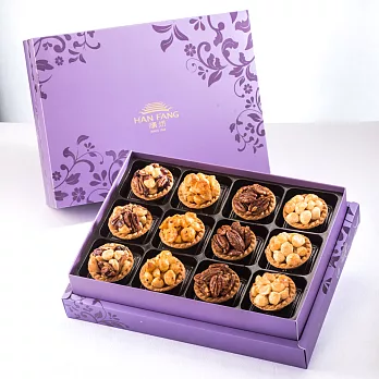 【臻饌】綜合堅果塔12入禮盒★什錦堅果塔-3+夏威夷豆堅果塔-3+辣味夏威夷豆堅果塔-3+咖啡胡桃堅果塔-3(紫)