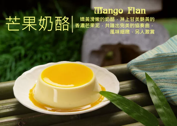 嬌黃滑嫩的奶酪,淋上甘甜艷黃的,香濃芒果泥,共譜出完美的協奏曲,風味細緻 令人激賞