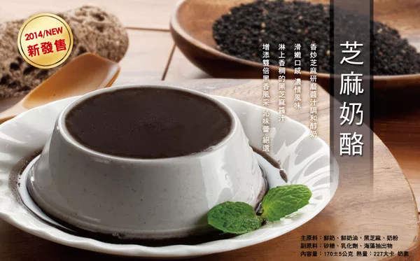◆商品成份:芝麻布丁:鮮奶、鮮奶油、黑芝麻、奶粉、水、砂糖、香草香料、脂肪酸甘油脂(乳化劑)、刺槐豆膠、鹿角菜膠。