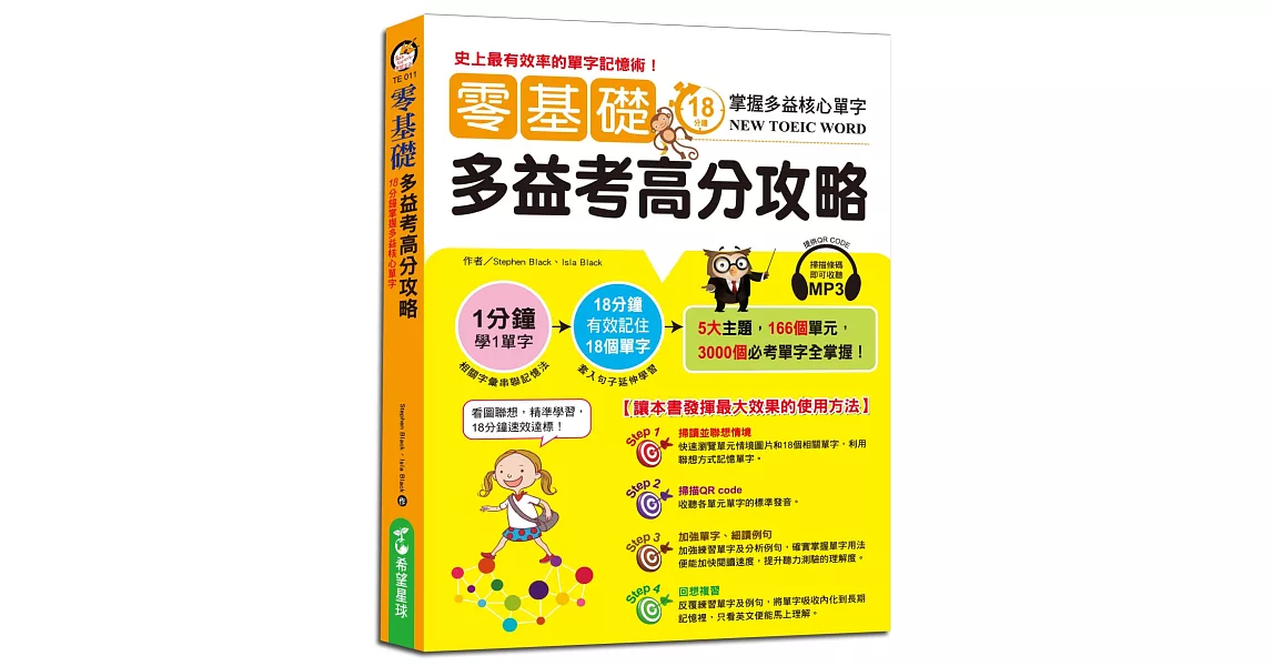 商品描述: 書名:零基礎多益考高分攻略:18分鐘掌握多益核心單字,語言:繁體中文,ISBN:9789866045561,頁數:352,出版社:希望星球出版社,作者:Stephen Black,Isla Black,出版日期:2019/01/09,類別:語言學習