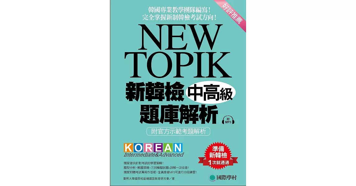 博客來-NEW TOPIK 新韓檢中高級題庫解析:韓國專業教學團隊編寫!完全掌握新制韓檢考試方向!(附MP3)訂購網址: https://www.books.com.tw/exep/assp.php/87926/products/0010783499?utm_source=87926&utm_medium=ap-books&utm_content=recommend&utm_campaign=ap-201906