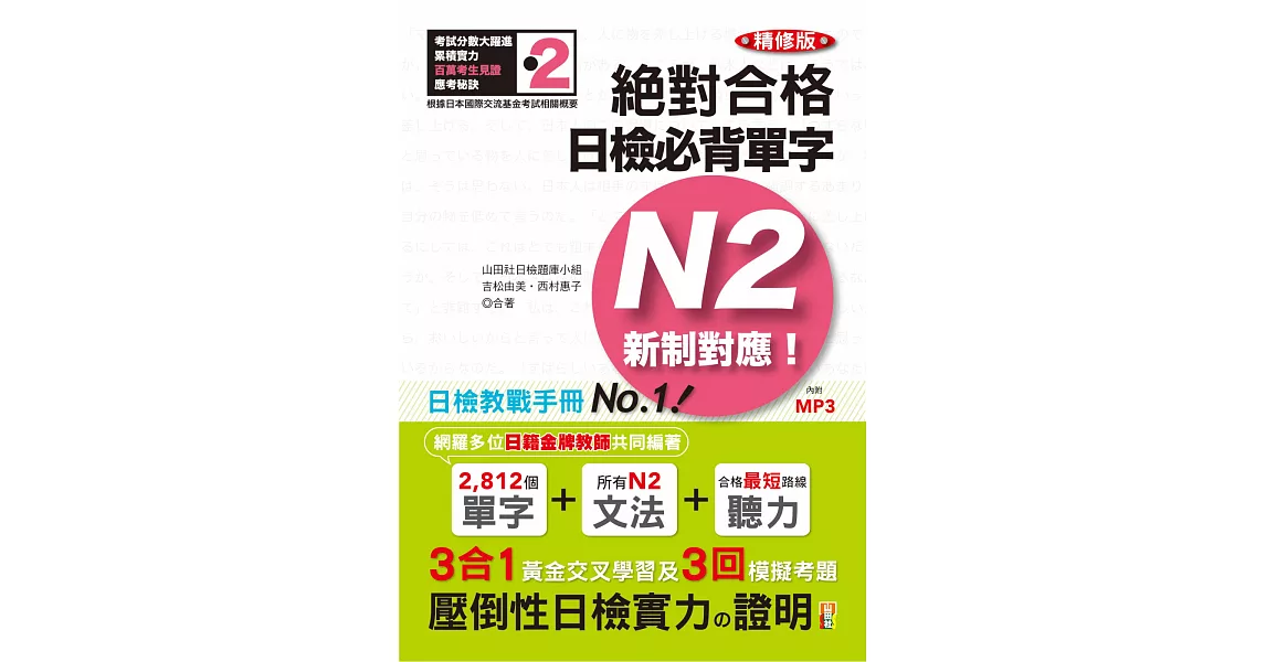博客來-精修版 新制對應 絕對合格!日檢必背單字N2(25K+MP3)訂購網址: https://www.books.com.tw/exep/assp.php/87926/products/0010707466?utm_source=87926&utm_medium=ap-books&utm_content=recommend&utm_campaign=ap-202001