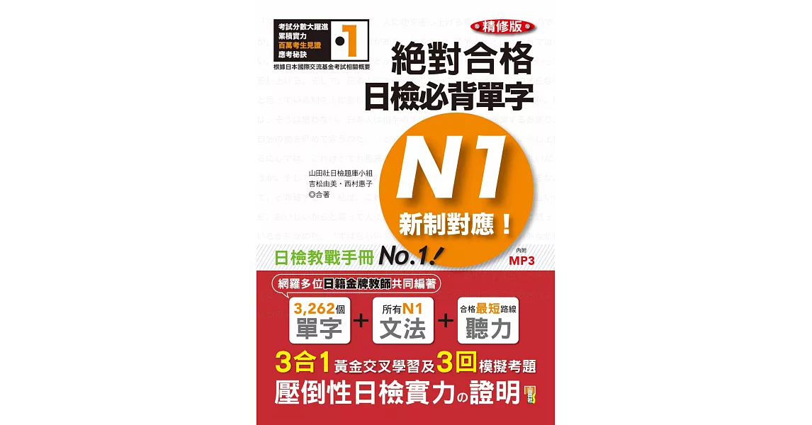 博客來-新制對應 絕對合格!日檢必背單字N1 精修版(25K+MP3)訂購網址: https://www.books.com.tw/exep/assp.php/87926/products/0010711188?utm_source=87926&utm_medium=ap-books&utm_content=recommend&utm_campaign=ap-202001