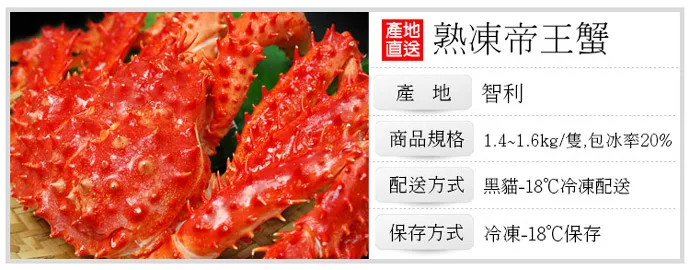 →→→→更多詳細”【優鮮配】特大級急凍智利帝王蟹2隻(1.4-1.6KG-隻)免運組”介紹請點我