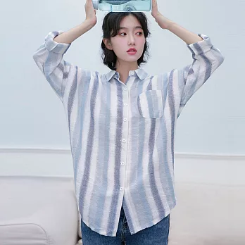 →→→→更多詳細”【A.Cheter】亞麻手感清新直條紋長袖襯衫100637FREE藍”介紹請點我←←←←←