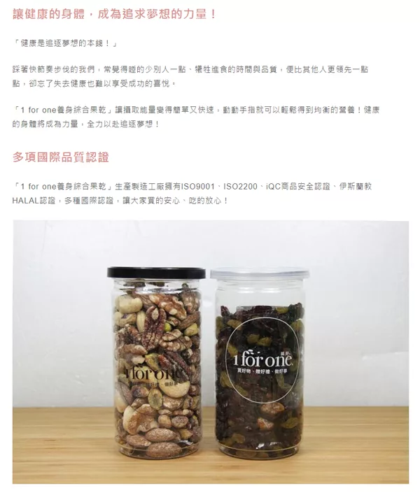 →→→→更多詳細”《1 for one》養生綜合果乾(200g/罐,共2罐)”介紹請點我