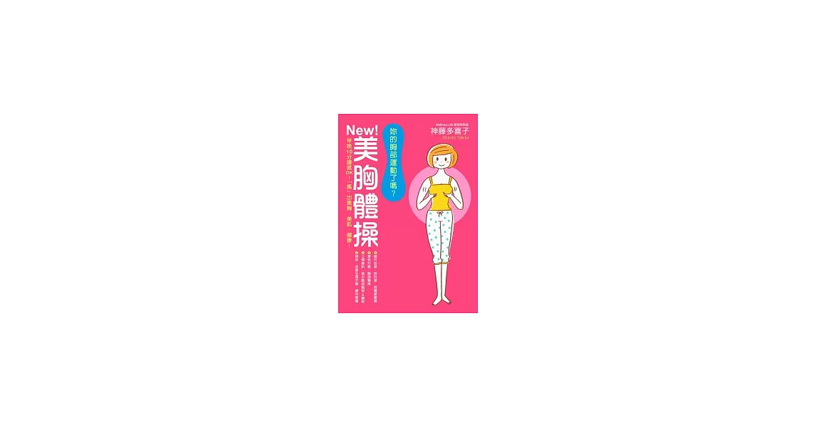 博客來-妳的胸部運動了嗎?NEW!美胸體操 早晚10分鐘就OK!「搖」出美胸.美肌.健康訂購網址: https://www.books.com.tw/exep/assp.php/87926/products/0010495316?utm_source=87926&utm_medium=ap-books&utm_content=recommend&utm_campaign=ap-202003